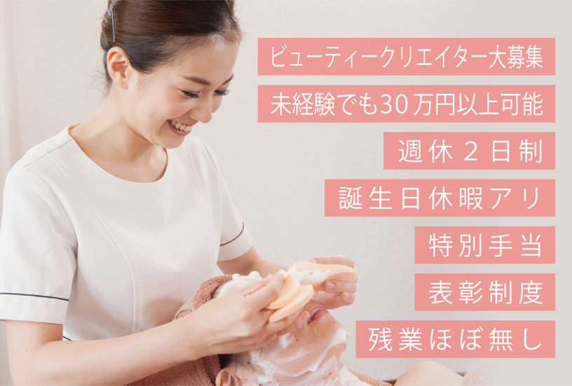 ◎無資格OK ◎未経験者、第2新卒歓迎 ◎美のプロフェッショナルを目指す方 ◎人のお世話をすることが好きな方 ◎自分もキレイになりたい方 ◎お話するのが好きな方 ◎仲間を大切にできる方 ◎素直で前向きな方 ◎明るく元気な対応が出来る方 |