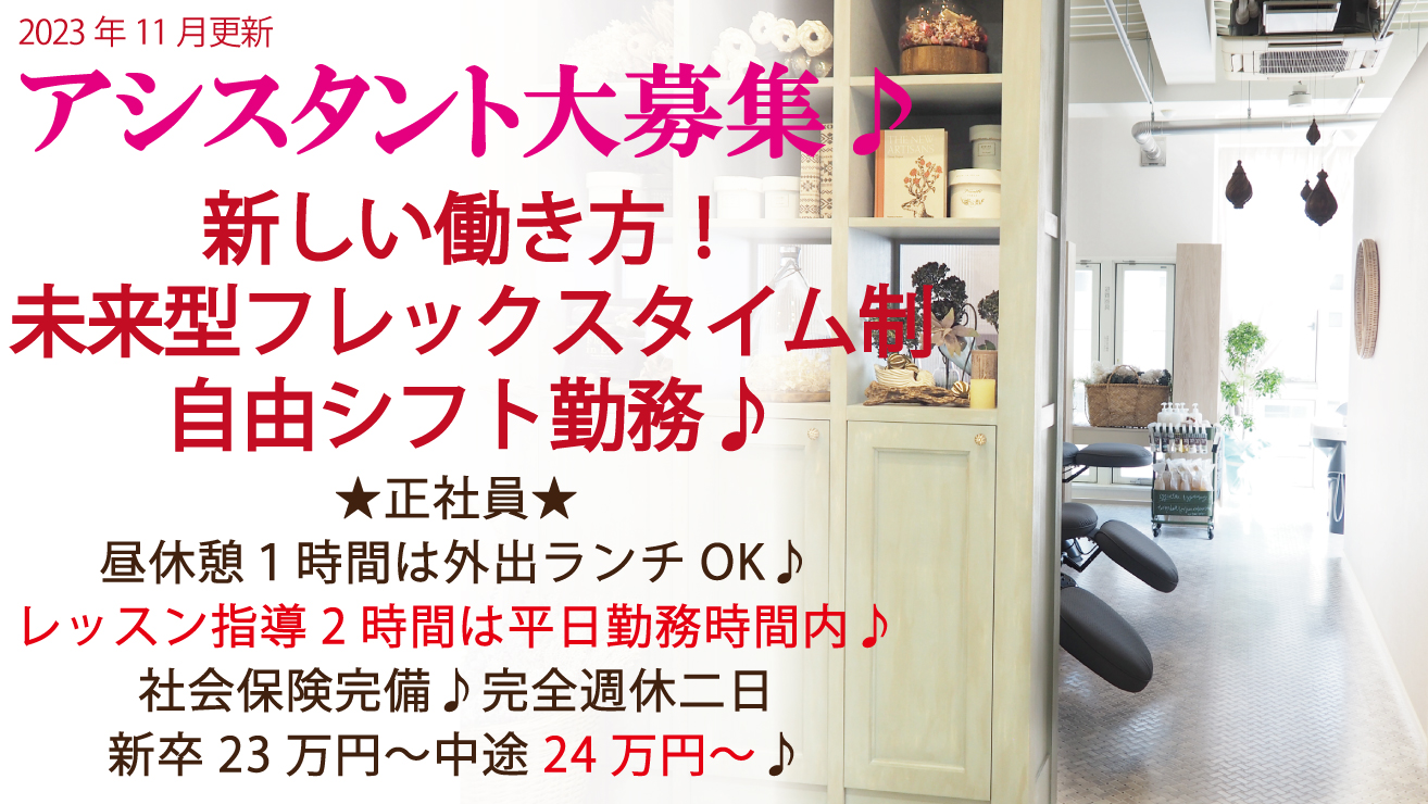 時給 1,080〜1,200円 ☆入社お祝い金5万円 ※1年以上勤務が条件になります。 ◇週3日からOK ◇時短勤務OK ※5時間勤務~ ◇平日のみ、週末のみOK ◇短期OK ◇社会保険、雇用保険、有給休暇あり ※労働時間等の条件を満たした場合 ◇ブランクある方OK 【給与支給例】☆+:+☆:+:+☆+:+☆:+:+☆☆+:+☆:+:+☆ ◇採用時 【実務経験5年以上】 時給1,200円~+交通費 ◇採用時 【実務経験3年以上】 時給1,100円~+交通費 ◇採用時 【実務経験1年以上】 時給1,040円~+交通費 ☆+:+☆:+:+☆+:+☆:+:+☆☆+:+☆:+:+☆+:+☆:+:+☆ ※面談により、経験・能力で決定します。 【その他】☆+:+☆:+:+☆+:+☆:+:+☆☆+:+☆:+:+☆+:+☆ 【昇給】職級アップ時、会社全体の業績に応じた一律昇給 【賞与】夏季・冬季賞与 ※会社業績に応じて 【各種手当】結婚・出産お祝金、指導手当、レッスン手当、スタイル手当、撮影手当 ☆+:+☆:+:+☆+:+☆:+:+☆☆+:+☆:+:+☆+:+☆:+:+☆ ※正社員、アルバイト・パートにより規定あり |