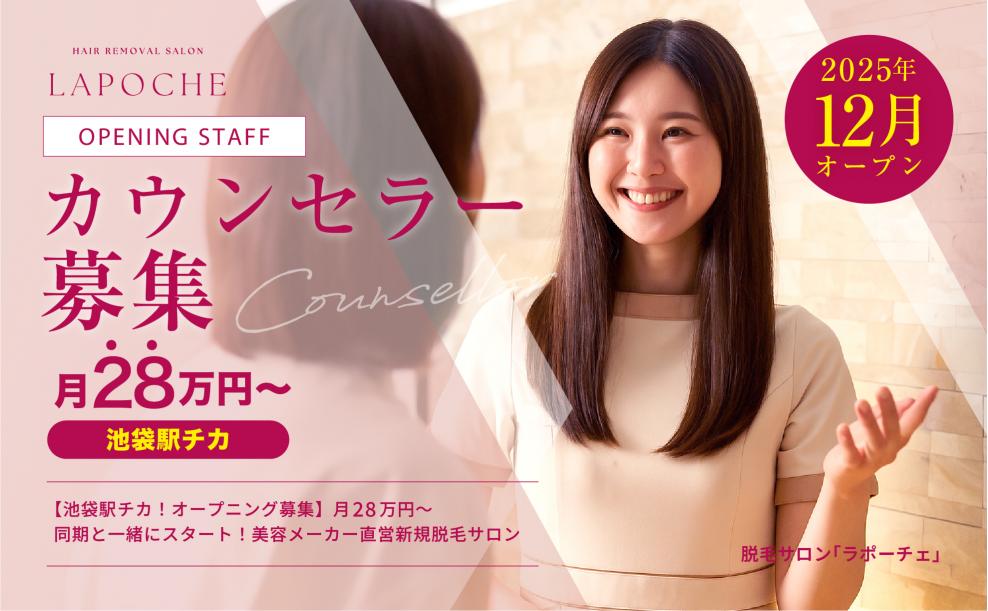 【池袋駅チカ✨オープニング募集】月28万円〜‼️同期と一緒にスタート!美容メーカー直営新規脱毛サロン