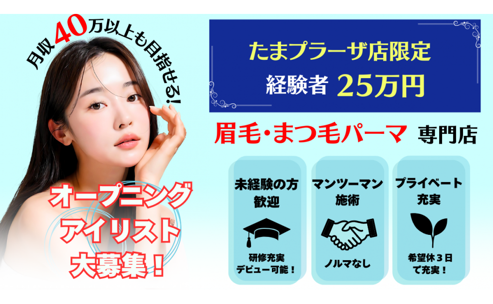 【9月~積極採用/中途・未経験者歓迎/元美容師活躍中】手荒れなし&1ヶ月でアイリストデビュー✨