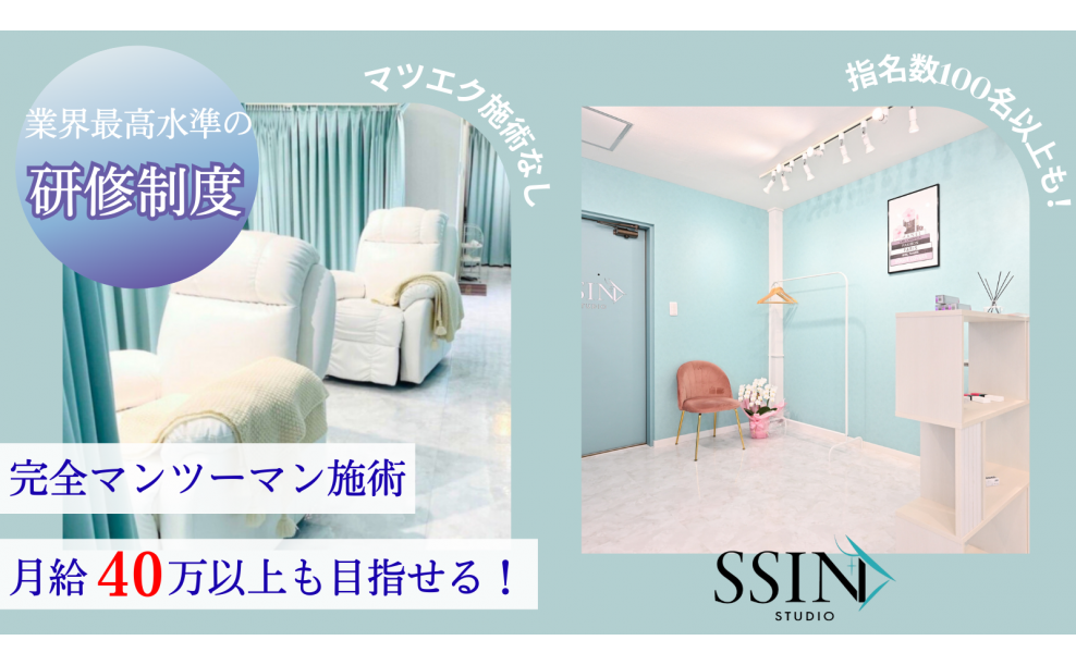 【落ち着いて売上を上げれる】それがSSIN STUDIOです。 【落ち着いて売上を上げれる】を何よりも大切にし運営しております。 スタッフ1人ひとりが丁寧なカウンセリング・多くの指名をいただける職場を目指しています!! 【SSIN STUDIOの魅力】 Point.1 完全マンツーマン施術 ・お客様一人ひとりにじっくり向き合えるので、流れ作業ではなく丁寧な接客&技術提供が可能✨ ・掛け持ち施術がないから、お客様からの満足度も高くリピーターに直結! ・「自分を選んでもらえる喜び」を実感しながら働けます。 Point.2 指名数100人越えのスタッフ多数在籍! ・「完全マンツーマン」×「高単価メニュー」だから、自分のファンをしっかり増やせる環境。 ・実際に指名数100人を超えるスタッフが多く在籍し、成果を出せる仕組みがあります。 ・やる気次第で月収40万円以上も可能!努力がきちんと収入につながります???? ・1ヶ月の研修制度があるため売り上げの上げ方がしっかり学べる Point.3 指名料100%バック! ・自分の指名はすべて自分に還元されるので、頑張りがそのまま収入に反映 ・「指名を増やす=収入アップ」の仕組みでモチベーションも維持しやすい Point.4 歩合制なのでやった分だけ貰える! ・基本給+歩合で、施術・販売・指名など成果に応じた報酬をしっかり受け取れる ・頑張った分が目に見えるため、働く時間やスキルアップが収入に直結 私たちと一緒に働きませんか?ご応募お待ちしております! 他社で内定をお持ちの方、ぜひご相談ください! 書類選考をカットしてスムーズに選考を進められます✨ |